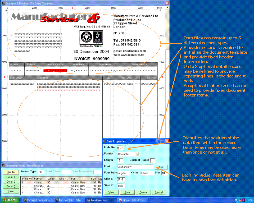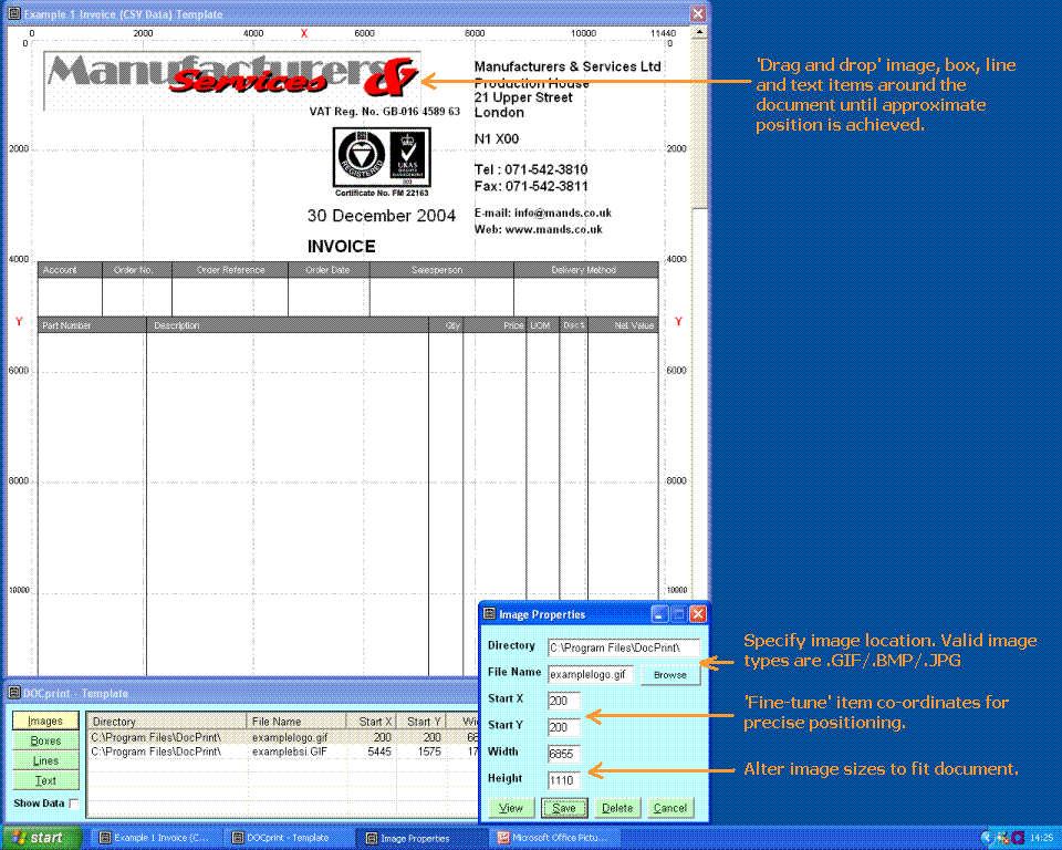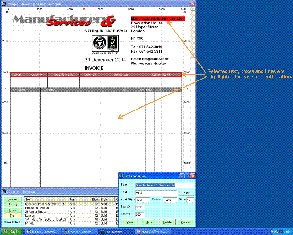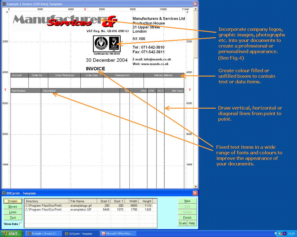 (photographs, logos etc.), boxes, lines and text in a wide range of colours and